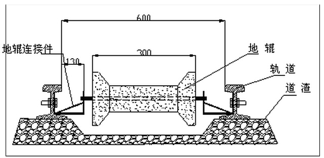 二、整改措施 從改變固定地輥的木質(zhì)框架入手,對地輥框架進(jìn)行革新,將木質(zhì)框架改為不易腐蝕、穩(wěn)定性強(qiáng)的3mm厚、60mm寬的鋼板??紤]到木質(zhì)框架固定在道木上的不穩(wěn)定性,將鋼板加工的地輥框 架固定在軌道上。綜合以上因素,技術(shù)革新后的地輥框架為型,地輥框架兩臂上各打一個孔,一端固定地輥,另一端用螺絲與軌道固定在一起(見附圖)